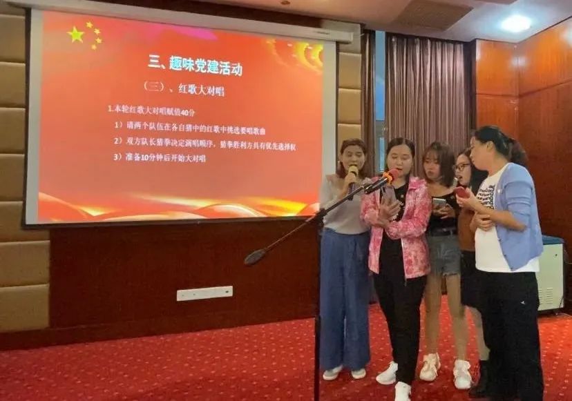 為鞏固黨史學習效果,我支部還組織了趣味黨建活動,現場氣氛活躍,通過黨史知識競答讓全體黨員更深入地了解我黨是如何領導中國人民救中國、成立新中國及走上新時代的。紅歌承載著人們對崢嶸歲月的記憶、對革命先賢的緬懷、對崇高理想和壯美人生的向往與希冀。聽紅歌,唱紅歌,不僅是對革命歷史的追憶,更是對革命精神的繼承。一曲曲或激昂或低沉或活潑或厚重的紅歌,讓我們一起徜徉在革命歷史教育的海洋中,汲取著豐富的精神食糧。
